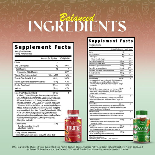 Nutritious Fruit and Veggies Gummies Supplement for Adults - Made in USA - Non-GMO - Gluten-Free - 120 Count - The Vitamin Kitchen