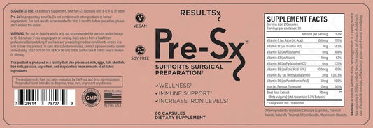 Pre-Sx Surgical Multivitamin with Iron for BBL, Tummy Tuck, Breast, Lipo, Nail & Hair, Skin Care - 60 Capsules
