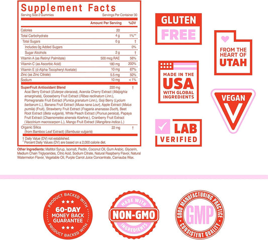 Superfruit Multivitamin Gummies with 13 Natural Superfruits - Rich in Vitamins A, C, E, Zinc - Immunity, Digestion, Energy - 60 Vegan Gummies