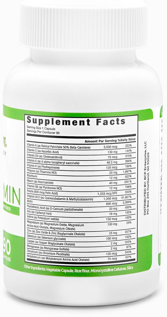 Bariatric Multivitamin Capsule with 18mg Iron - Post Surgery Supplement for Gastric Bypass & Sleeve | 90 Day Supply