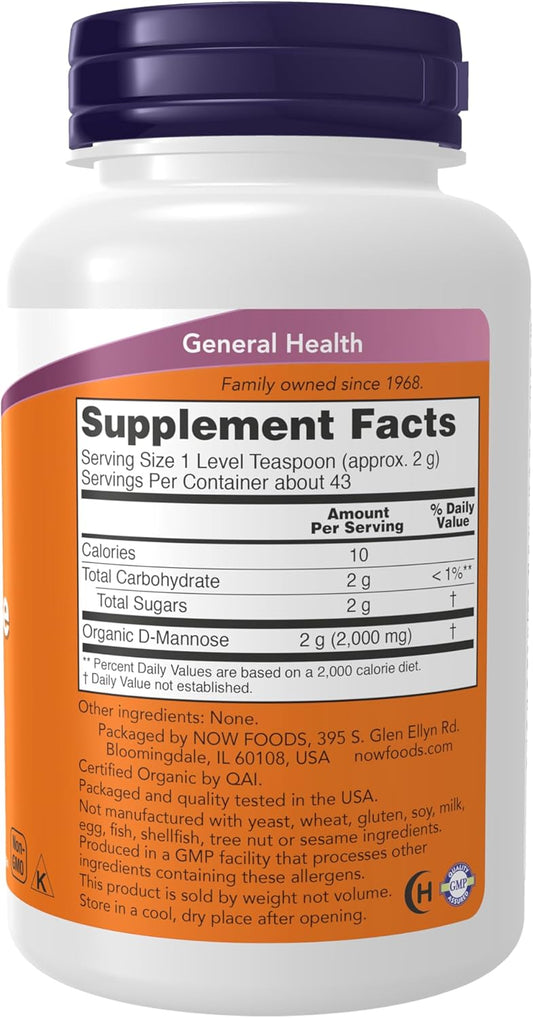 NOW Foods D-Mannose Powder - Immune Support for Healthy Urinary Tract - Non-GMO, 3oz