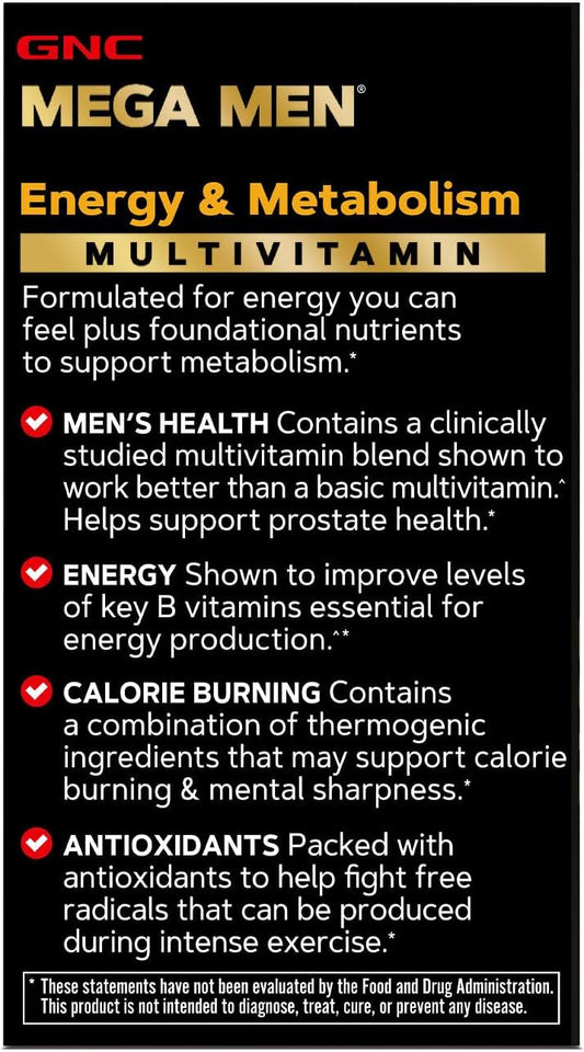 Energy-Boosting Multivitamin for Men | GNC Mega Men Metabolism & Antioxidants | 90 Capsules