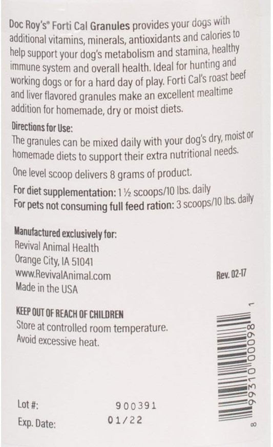 Doc Roy's Forti Cal High Calorie Nutritional Energy Supplement - 454 gm Granules for Dogs, Cats, Puppies, and Kittens by Revival Animal Health