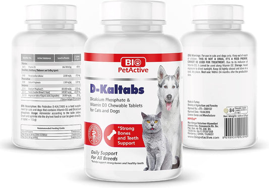 Pet Supplement: Bio Pet Active D-Kaltabs - Phosphorus, Calcium, Vitamin D3 for Dogs & Cats - Prenatal Vitamins - 84 Chewable Tablets