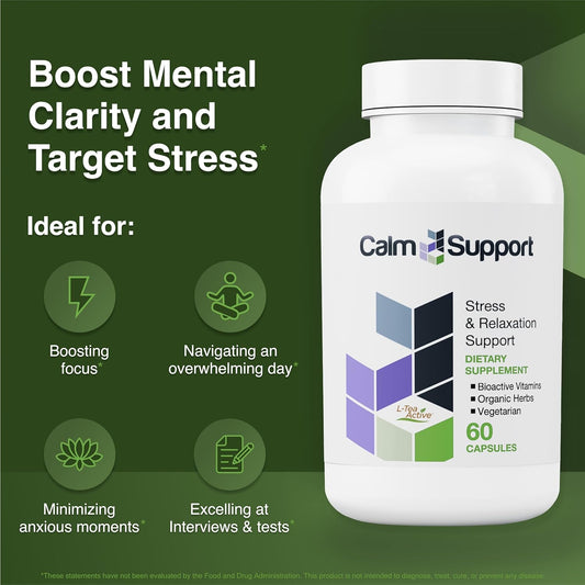 Natural Stress Relief Supplement with Ashwagandha, Passion Flower, and Valerian Root - Calming Support for Relaxation and Anxiety - 13 Vitamins and Minerals for Mental Wellness