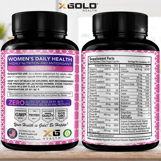 Organic WholeFood Women's Daily Multivitamin 50 Plus with Ginger, Maca, B Complex - Energy & Immune Support - 90 Capsules