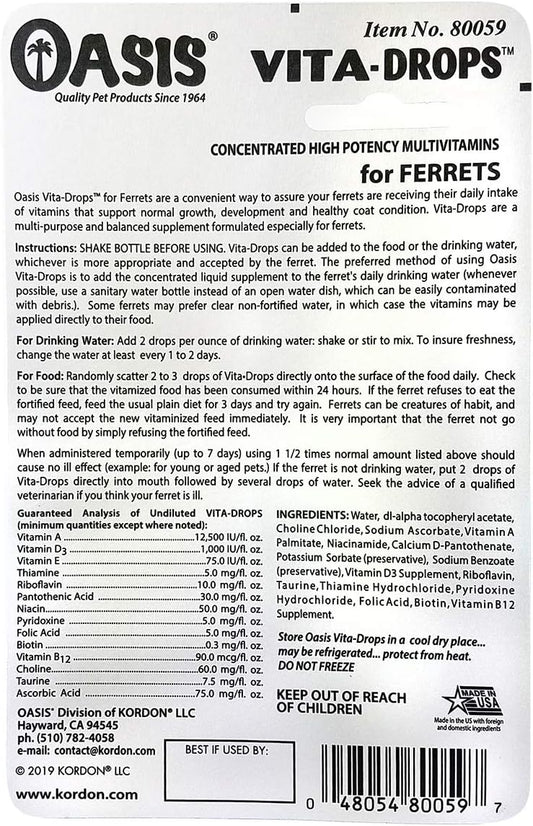 Ferret Vita-Drop Vitamins by OASIS #80059 - 2-Ounce Bottle for Optimal Health