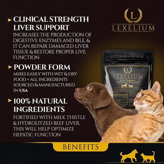 Liver Support Supplement for Cats and Dogs - Detox, Kidney, Liver & Skin Function - Milk Thistle, Lysine, Choline Bitartrate, Methionine - 200g