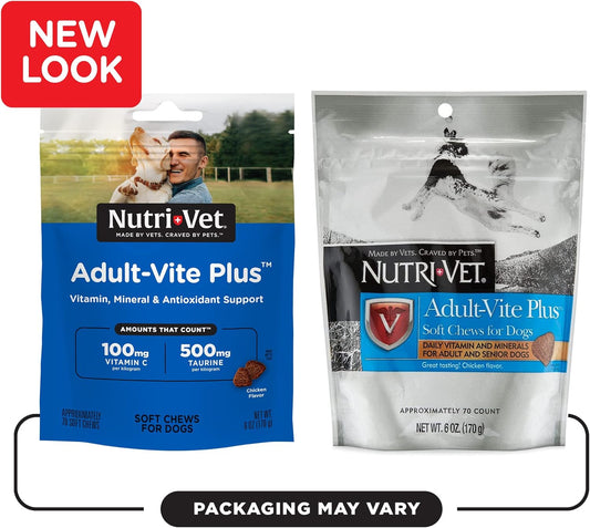 Nutri-Vet Adult-Vite Plus Soft Chews for Dogs - 70 Count - 6 Ounces - Everyday Health Support with Vitamins & Minerals