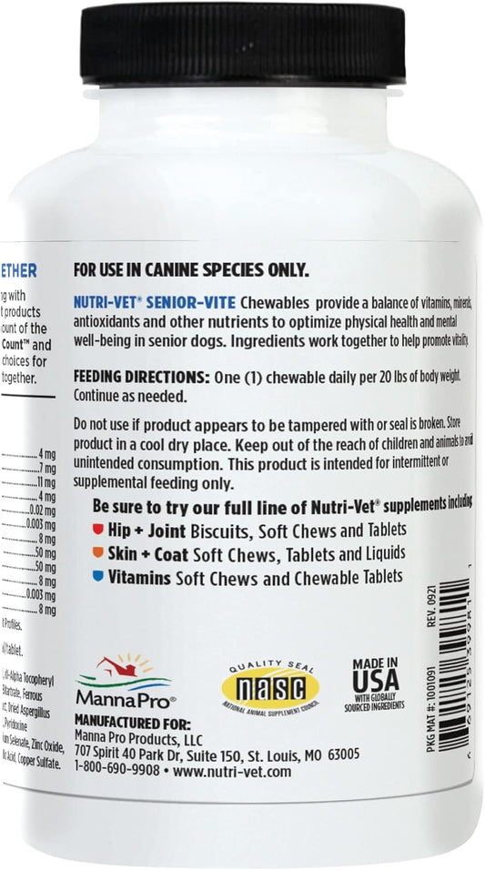 Nutri-Vet Senior Dog Vitamins - 120 Chewable Tablets for Daily Nutritional Support in Maintaining Peak Condition