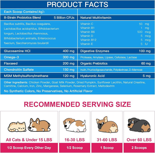 Dog Vitamins Powder with Probiotics, Enzymes, Glucosamine, Chondroitin & Omega 3 - Complete Supplement for Homemade Food, Joint, Skin & Immune Support