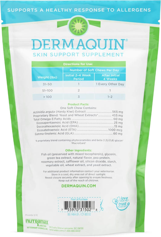 Nutramax Dermaquin Skin Support Supplement for Large Dogs 31+ lbs - 60 Soft Chews by Nutramax Labs