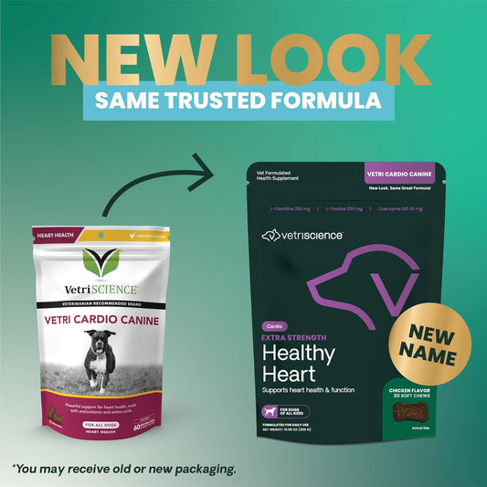 VetriScience Healthy Heart Chews for Dogs, Extra Strength Cardio Taurine and CoQ10 Supplement, Chicken Flavor, 60 Count