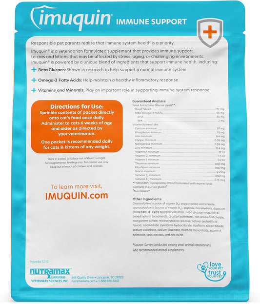 Nutramax Imuquin Immune Health Supplement Powder for Cats - 30 Packets with Beta Glucans, Marine Lipids, Vitamins & Minerals