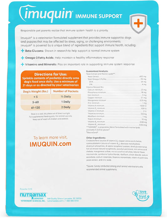 Nutramax Imuquin Immune Support Supplement Powder for Dogs - 30 Packets, Enhanced Formula with Beta Glucans, Marine Lipids, Vitamins, and Minerals