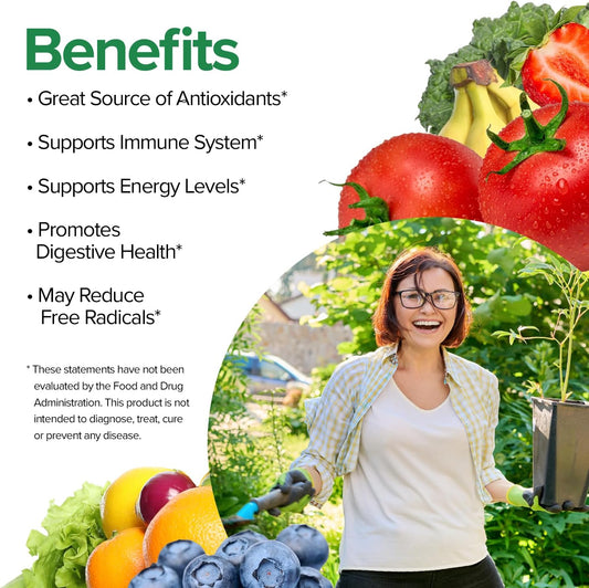 Vita Fruits and Veggies Capsules - 25 Superfood Ingredients Multivitamin for Men and Women - 60 Count with Vitamins A, C, D, E, B, and Zinc