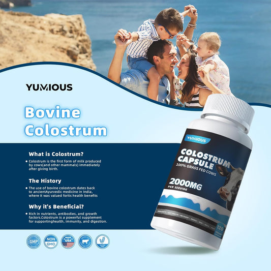 2000mg Bovine Colostrum Capsules: Gut Health, Muscle Recovery, Energy, Hair, Skin, Immune Support - 50% IgG Cow Colostrum Supplement - Superfood, Gluten Free - 120 Capsules