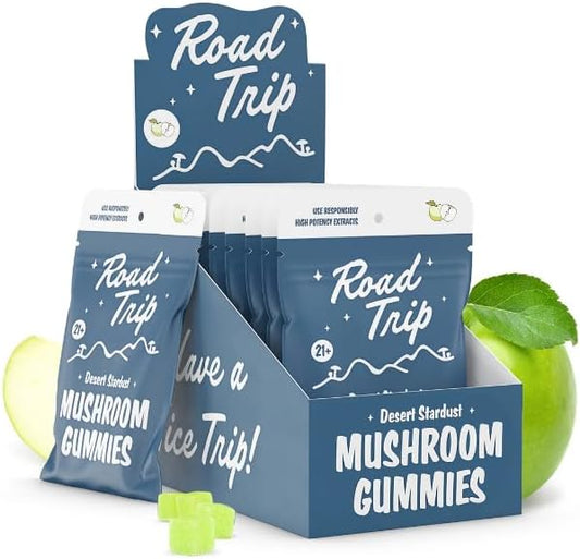 Desert Stardust Green Apple Mushroom Gummies for a Fun Road Trip