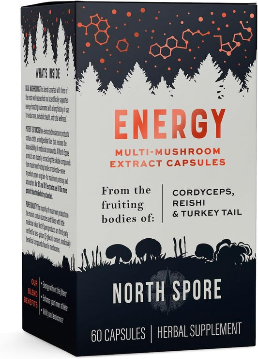 High Potency Organic Mushroom Blend for Stamina & Endurance | Cordyceps, Reishi, Turkey Tail | 60 Day Supply | 100% Fruiting Body Extracts | Vegan, Non-GMO | Made in USA