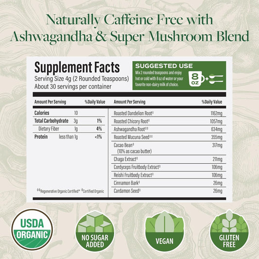 Organic Roasted Chicory & Dandelion Root Coffee Alternative for Energy & Gut Health