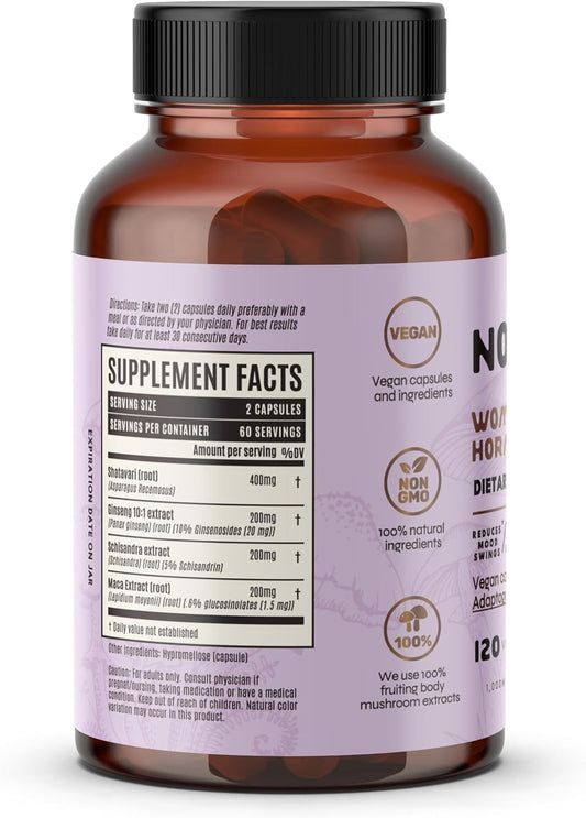 Woman Hormone Balance Capsules with Shatavari, Schisandra, Maca, Ginseng, Adaptogenic Roots, Mushroom Extract - 120 Capsules