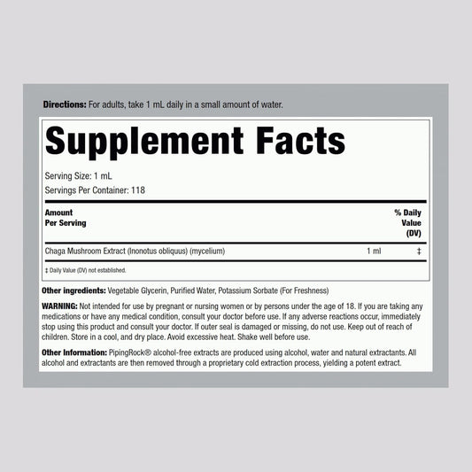 Chaga Mushroom Liquid Extract 4oz | Alcohol-Free Vegetarian Tincture | Non-GMO Gluten-Free Supplement