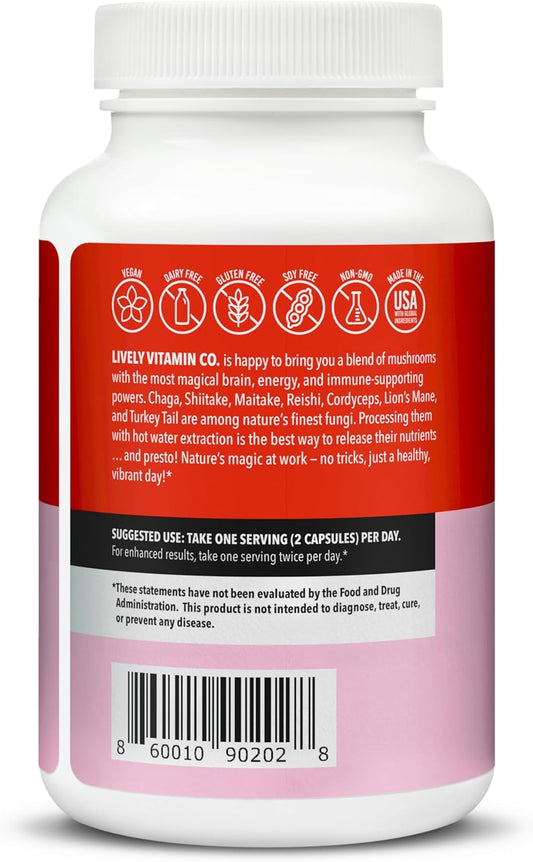 Mushroom Magic Supplement with Chaga, Cordyceps, Lions Mane, Turkey Tail, Reishi, Shiitake, Maitake for Immune Support, Energy, Memory - Non-GMO - 120 Vegan Capsules
