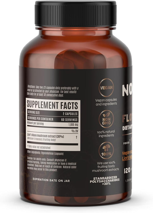 Lions Mane Mushroom Extract Capsules for Focus, Memory, and Clarity - 100% Fruiting Body Supplement - 120 Count
