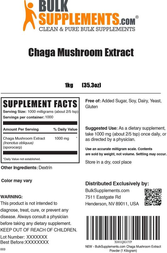 BulkSupplements.com Chaga Mushroom Extract Powder - 1000mg per Serving, Gluten Free Supplement in Bulk (5kg)