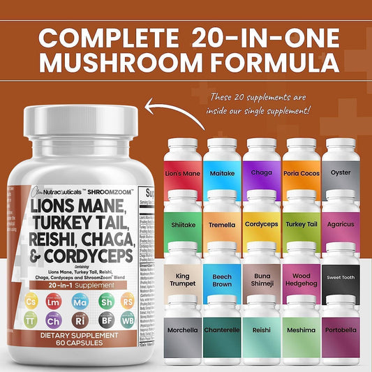 Advanced Mushroom Supplement for Brain Health & Mental Clarity - Lions Mane Capsules with Reishi, Chaga, Maitake & Shiitake - Memory Support & Focus - 30 Capsules