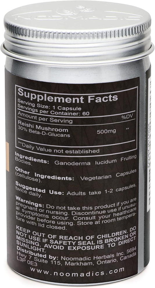 Organic Reishi Mushroom Capsules for General Wellness & Longevity, 60 Capsules, 500mg, Hot Water Extract, 30% Beta-D-Glucans