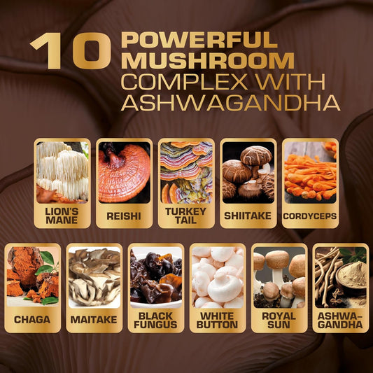 20-in-1 Mushroom Supplement 60 Capsules - 3000mg Lion’s Mane, 3000mg Turkey Tail, 1000mg Reishi, Cordyceps & Chaga, Plus Maitake, Shiitake - Nootropic, Immune Support, Energy Boost