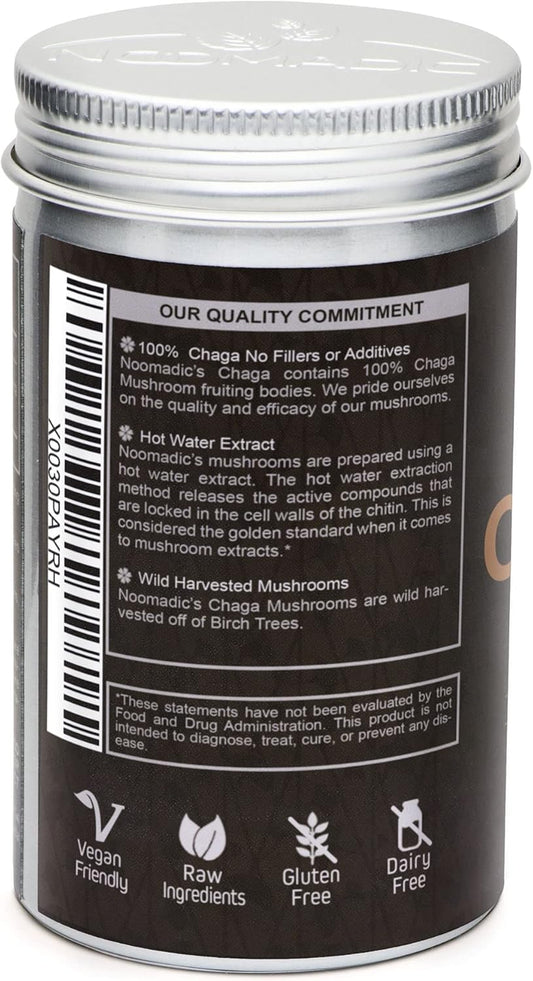 Organic Noomadic Chaga Mushroom Capsules - 60 Count, 500mg, Immune Support, Antioxidant, 30% Beta-D-Glucans, Hot Water Extract