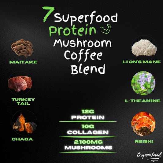 OrganiiLand Protein Mushroom Coffee: Ground Blend with Collagen, Lion's Mane, Chaga, Turkey Tail, Reishi, Maitake, L-Theanine for Focus, Energy, Immunity, and Digestion