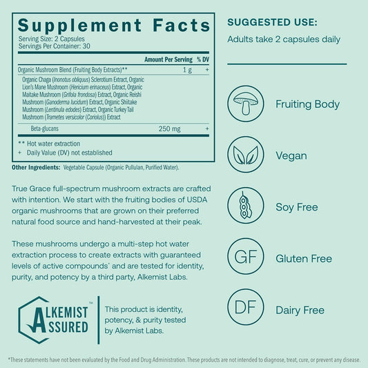 Organic True Grace Mushroom Myco-Renew Blend for Daily Immune Support - 60 Capsules