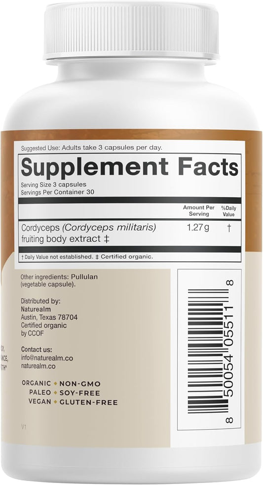 Organic Cordyceps Mushroom Capsules - Boost Energy, Stamina, Immunity - Vegan, Non-GMO - 30 Day Supply