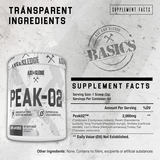 Axe & Sledge Supplements Peak-O2 Basics Powder - Unflavored, Supports Exercise Performance and Endurance, 60 Servings, No Artificial Ingredients