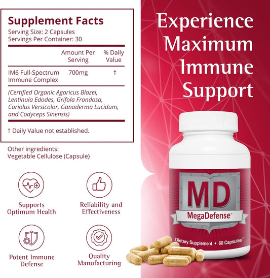 Waiora MegaDefense Mushroom Capsules - 6 Mushroom Supplement for Daily Wellness - Non-GMO - 2 Bottles / 60 Veggie Capsules
