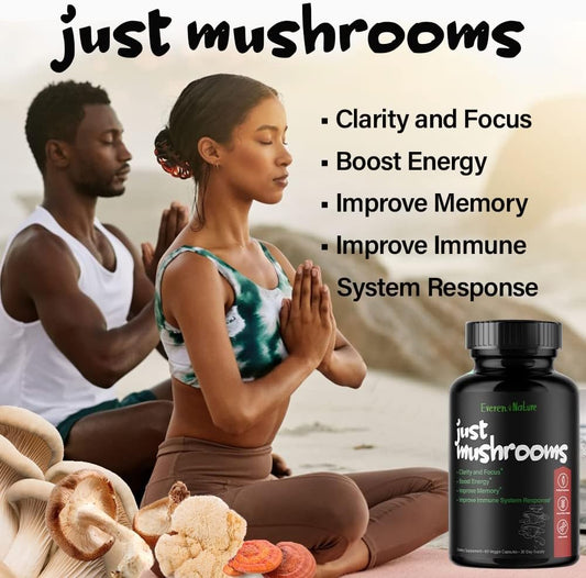 Natural Energy Mushroom Blend - Lion's Mane, Turkey Tail, Cordyceps, Reishi - Nootropic Brain Supplement - Boost Clarity & Focus - Immune Support