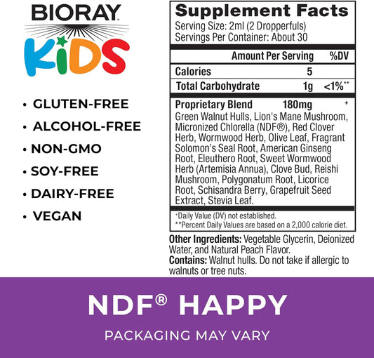 BIORAY Kids NDF Happy Peach 2 fl oz - Eliminates Irritability-Causing Organisms - 1-2 Month Supply