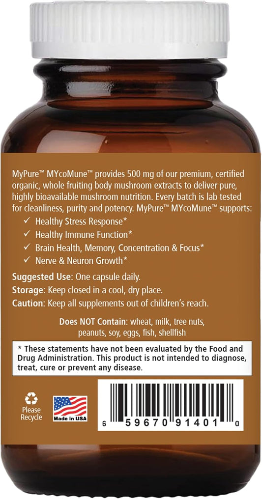 Organic Mushroom Powder Extract Supplement for Immune Support - Reishi, Lion's Mane, Cordyceps, Chaga, Shiitake, Maitake - 60 Capsules by PURE ESSENCE LABS