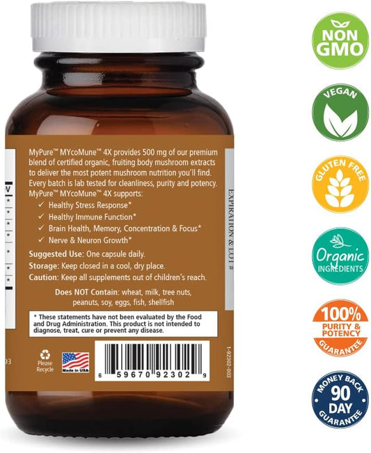 Organic Mushroom Supplement with Reishi, Lion's Mane, Cordyceps, Chaga, Shiitake, Maitake for Immune System Support, Stress Relief, and Energy Boost - 60 Capsules by Pure Essence Labs
