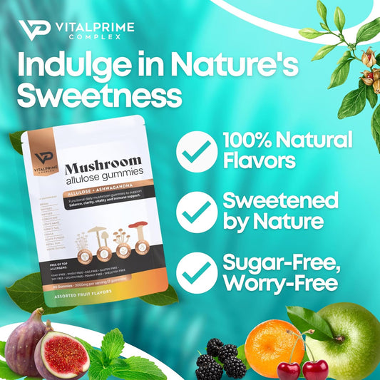 Sugar-Free Ashwagandha & Mushroom Gummies | Immune Support & Energy Boost | Vegan & Keto | 80 Natural Flavored Gummies