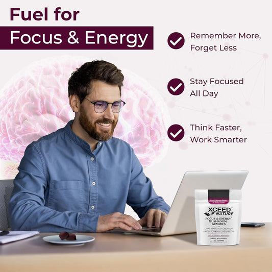 XCEED NATURE Lions Mane & Cordyceps Mushroom Gummies - 10in1 Supplement for Focus, Energy, Mood, Memory & Clarity - 60 Count