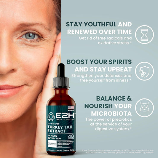 E2H Turkey Tail Mushroom Extract - Immune & Digestive Support Supplement - Non-GMO, Vegan - Pack of 3