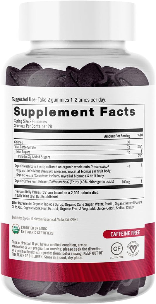 OM Mushroom Superfood Brain Fuel+ Gummies - Memory & Focus Support with Lion's Mane & Reishi - Raspberry Supplements, 28 Servings