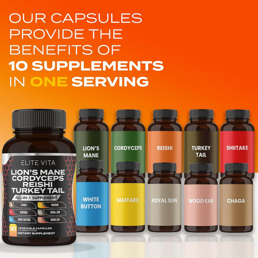 90 Capsules Elite Vita Nootropic Mushroom Blend Supplement for Enhanced Focus and Cognitive Support