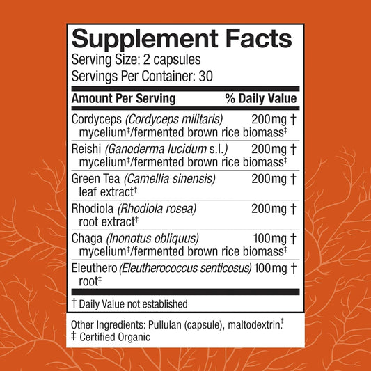 MycoBotanicals Energy Capsules - Herbal Supplement for Energy & Respiratory Support - Green Tea Capsules with Cordyceps, Reishi & Chaga - 60 Capsules