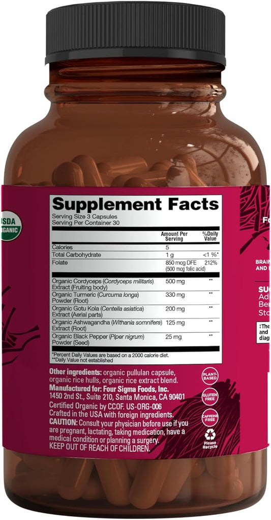 Nootropic Memory Support Capsules with Cordyceps, Turmeric & Ashwagandha | Improve Focus & Mental Clarity | 30 Servings