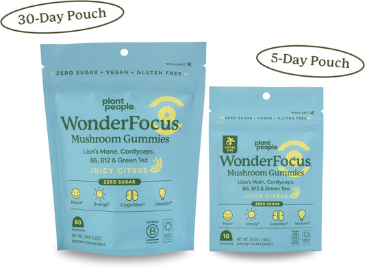 Plant People WonderFocus Mushroom Gummies Mini - Nootropic Brain Supplement with Lion’s Mane & Cordyceps for Memory, Focus, Energy, and Mood - Vegan Citrus Flavor Trial Size